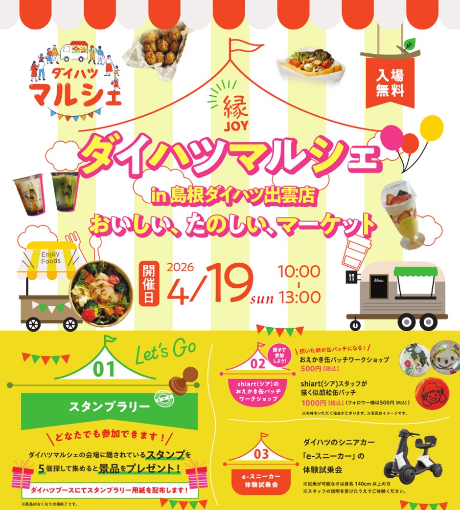 今年も【ダイハツマルシェ in 出雲店】を開催します!!