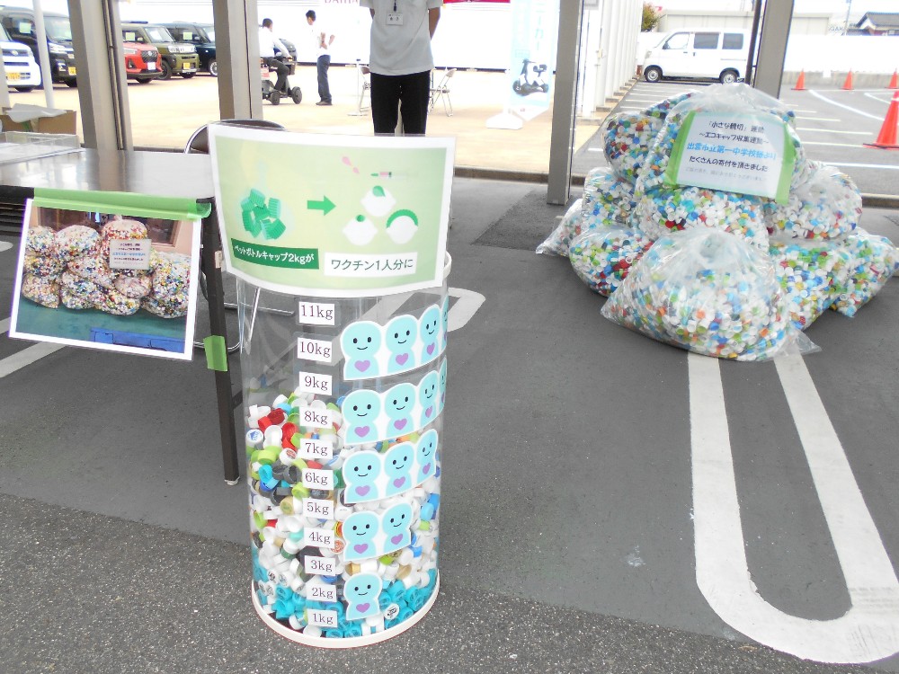 4月19日に開催された『ダイハツマルシェ in 出雲店』にて「小さな親切運動 エコキャップ活動」を行い、当日は約6.5kgを寄付頂きました。