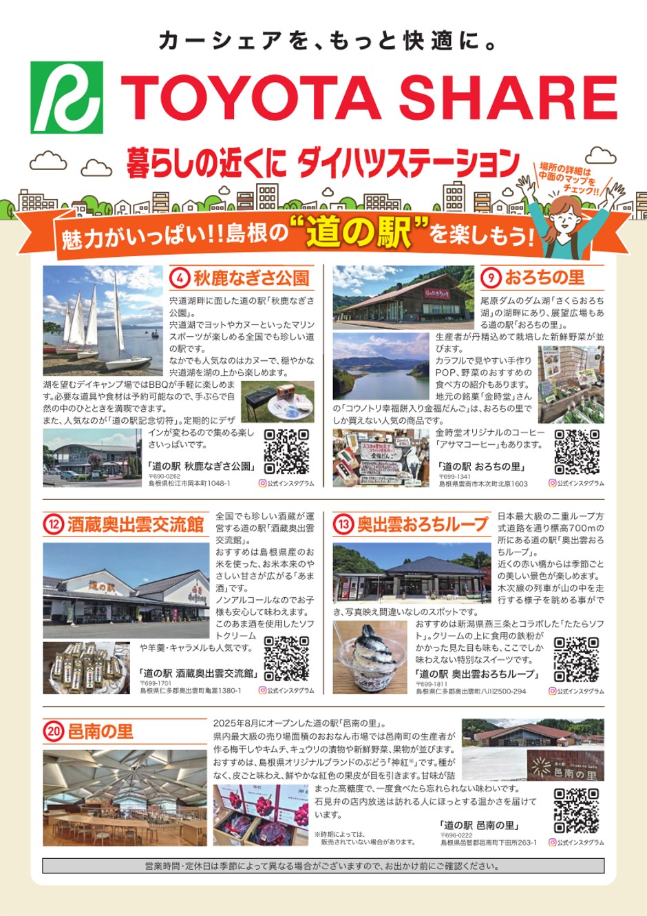 そんな魅力をもっと知ってもらいたいという思いから、この度、島根ダイハツオリジナル道の駅マップを作成しました✨